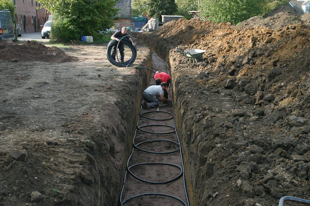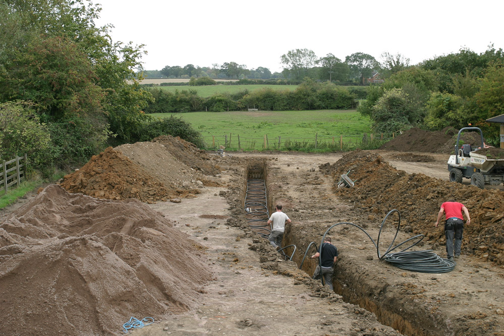 While the main system components were provided by the UK’s leading supplier of heat pumps, ICE Energy, and plumbing and electrical elements of this installation were carried out by sub-contractors, the most significant part of this installation was the ground works associated with the laying of 600m of ground collector pipes, and this was carried out by Scott and his team.