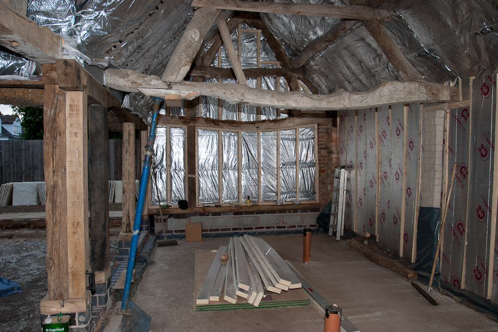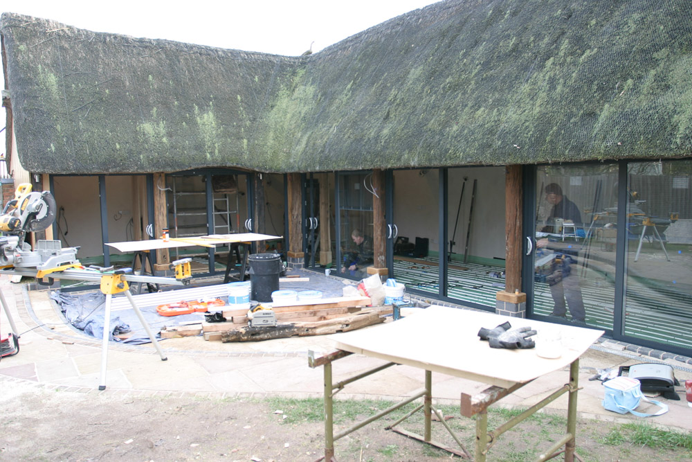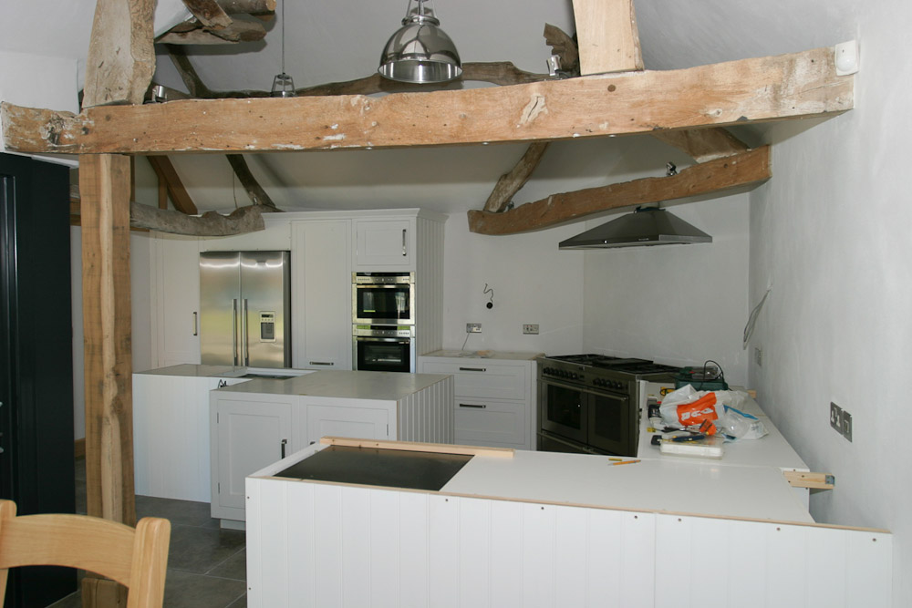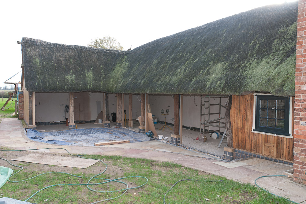 This 6 month project was concerned with the conversion of a 19th Century timber framed thatched barn to additional living accommodation providing open plan living / dining space, a new luxury kitchen and utility room, and enlarged entrance hall incorporating equipment for a new ground source heat pump based heating system.