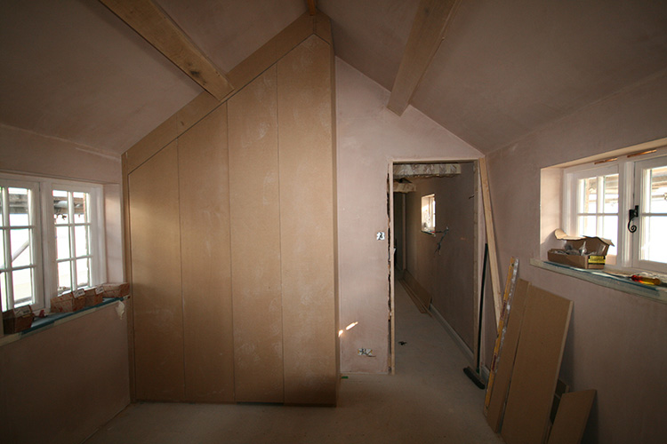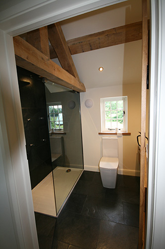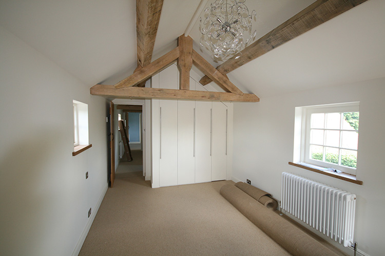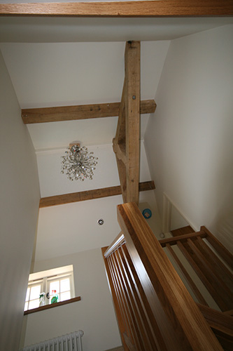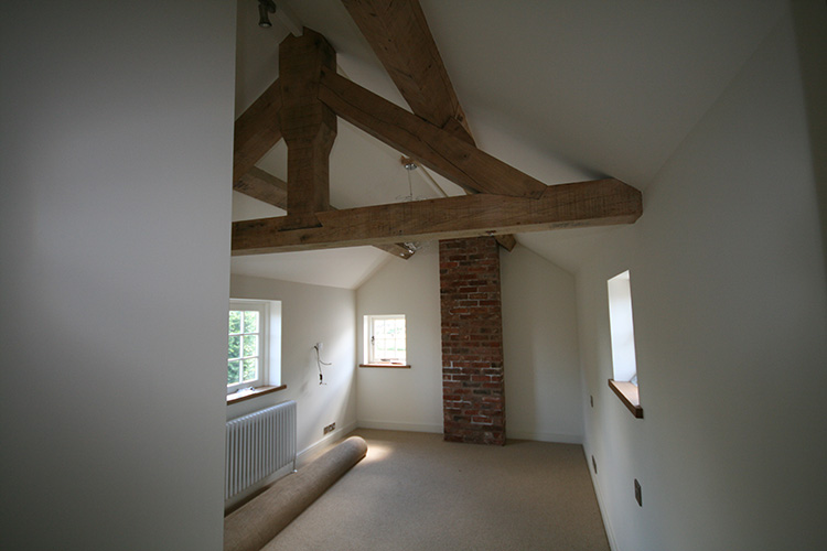 The extension created two further bedrooms, a family bathroom and a jack and jill bathroom. Oak king post trusses and purlins were fitted to run the length of the 1st floor extension to enable the new rooms to sympathetically blend into the traditional feel of a barn conversion. Extensive alterations were carried out to the existing property including a new kitchen, cloak room, utility room and oak and slate flooring to bring the building up to date with a more modern style and practical living accommodation.