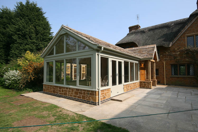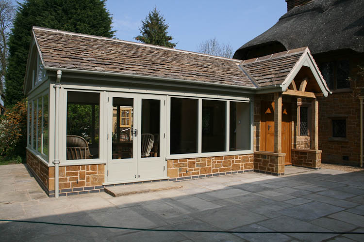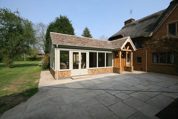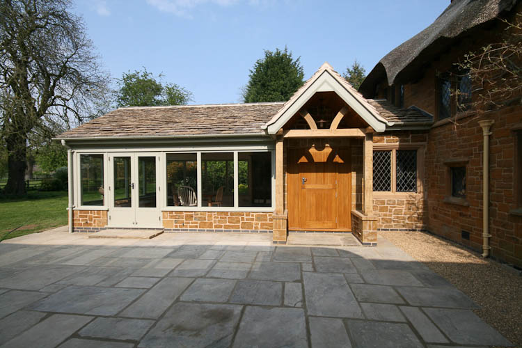 This was constructed using Iron Stone stone-work to match in with the existing building, with oak entrance and bespoke windows and doors. The roof was finished with a specialist roof tile from Gloucestershire to give character to the new addition.